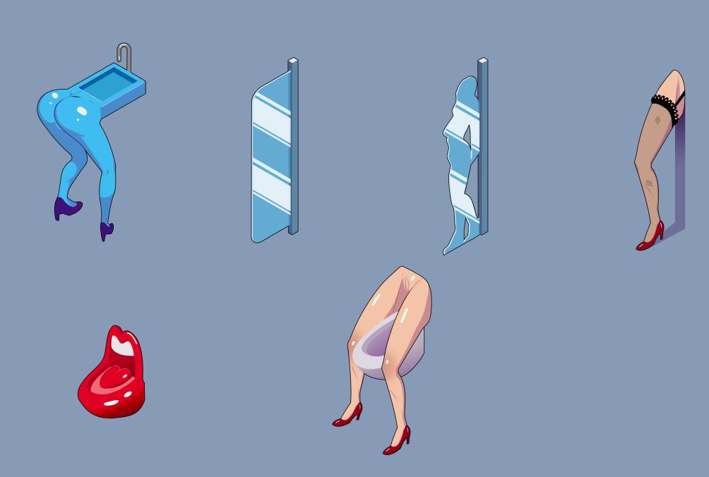 It’s been a while since we showed you some Sexy Politics, yeah? We’ve been working on in-game generators. Currently, we designed several buildings through all their stages. In our working copy, we used a lot of existing Booty Farm decor, but obviously that can’t stay for the final game, so we made some brand new overly sexualized items that you definitely won’t find in your local Bed, Bath, and Beyond.