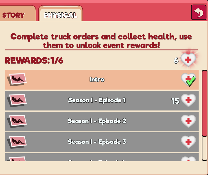 There is an animated health pack in the top right of your screen. Click on it to toggle your event menu and see how many health packs you will need to unlock the next Nurse Jessica scene.